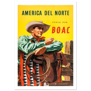BOAC America Del Norte Vintage Cowboy Travel Poster