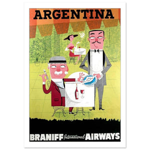 Braniff International Airways Argentina Sophisticated Café Travel Poster