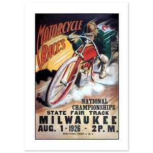 Vintage 1926 Milwaukee National Championships Motorcycle Racing Poster