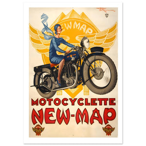 Vintage 1930 Motocyclette New-Map French Art Deco Poster