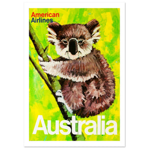American Airlines Poster Highlighting Australia's Iconic Koala Wildlife