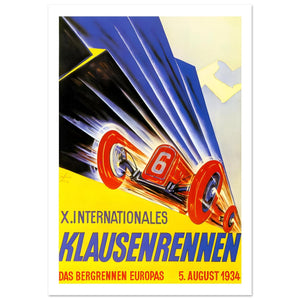 1934 X Internationella Klausenrennen Hillclimb-affisch