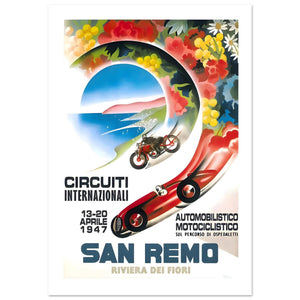 1947 San Remo International Motorcycle Racing Poster