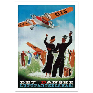 Vintage flygplansreseaffisch - Det Danske Luftfartsselskab